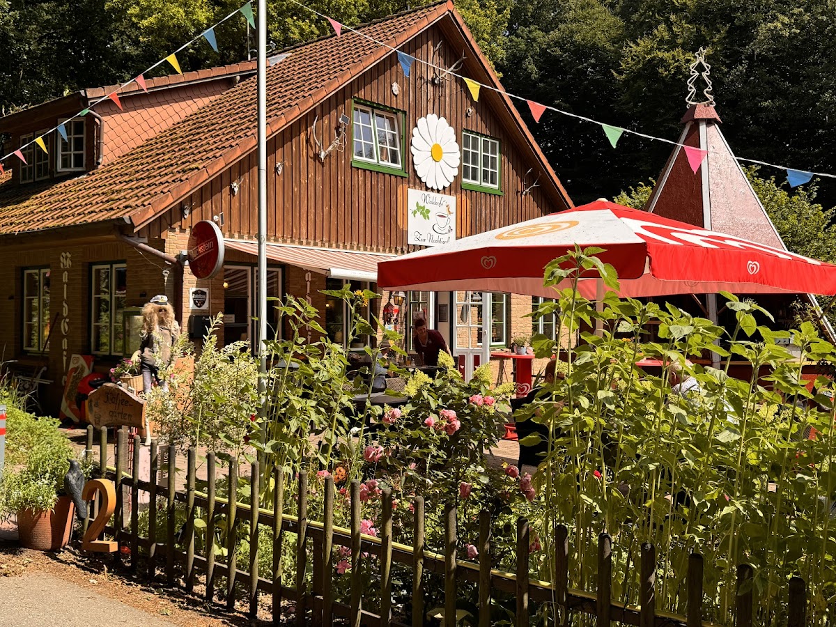 The atmosphere here leans into the relaxed pace of rural Schleswig-Holstein life. There’s a feeling of stepping away from the bustle, especially noticeable when sitting in the café garden where natural light filters through the trees and bike riders, families, and small groups find an inviting place to rest.
